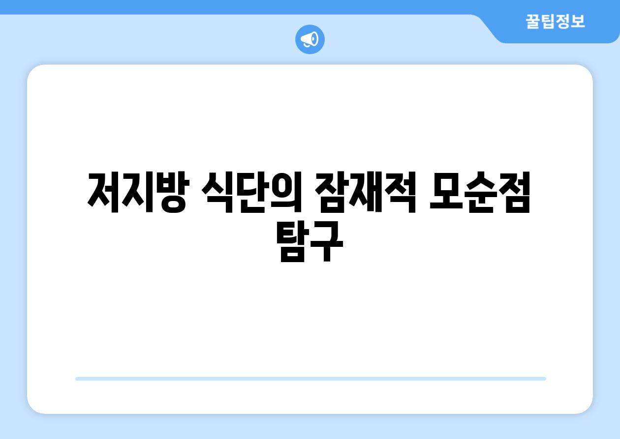 | 저지방 식단이 주장하는 장점 | 잠재적 모순점 |
